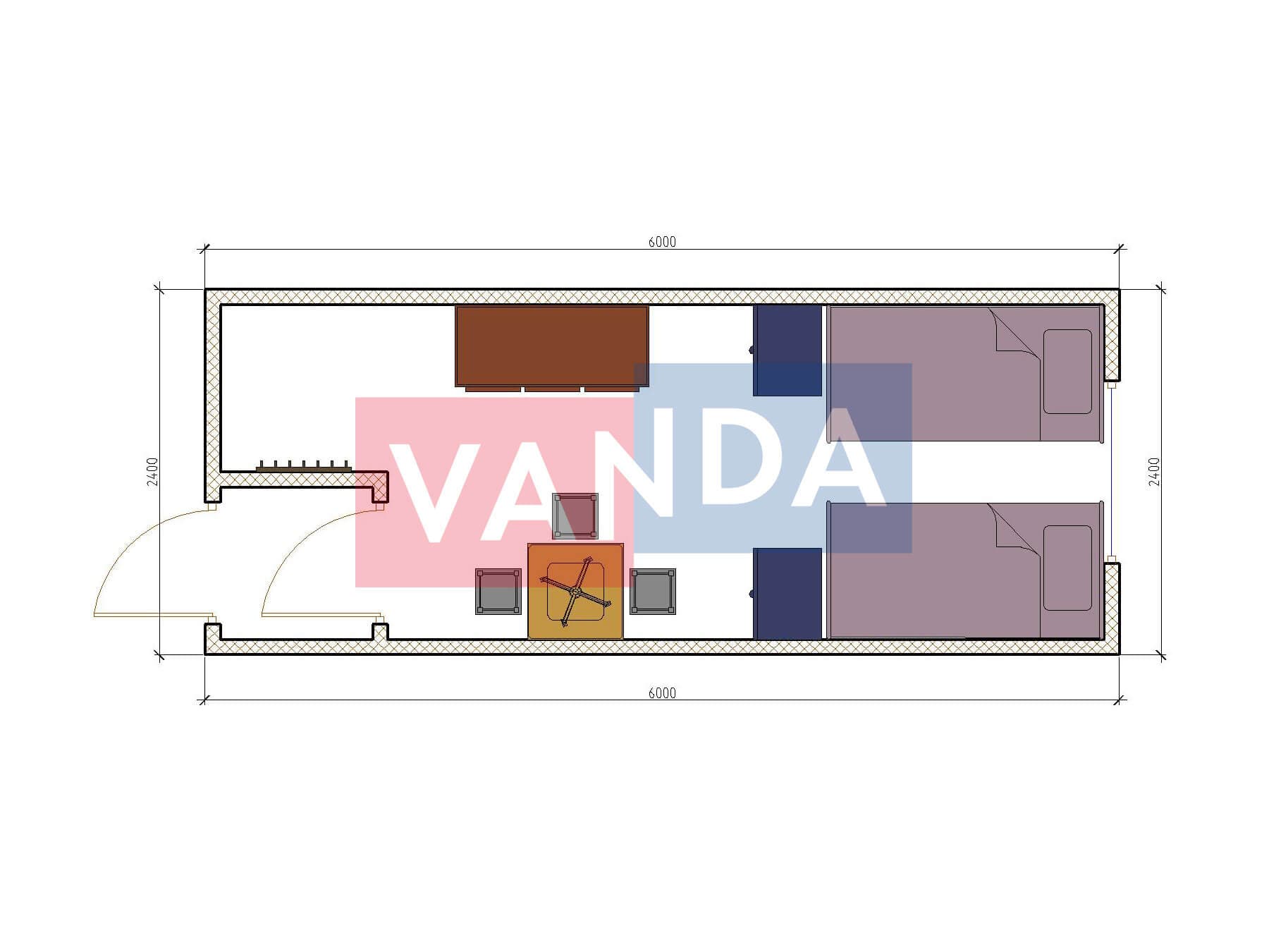 Металлическая бытовка распашонка 5,85 x 2,4 - Вагонка ПВХ
