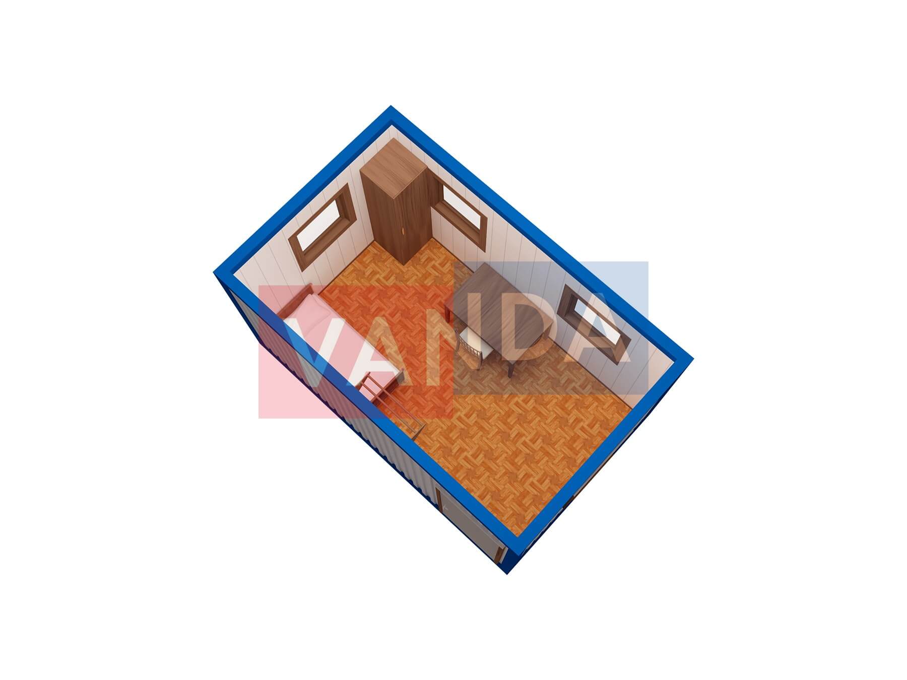 Металлическая бытовка без тамбура 5,85 x 2,4 - Оргалит ДВП
